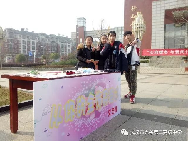 关注社会公益,撒下爱的种子,播洒温暖阳光。2017年12月5日,在第32个国际志愿者日到来之日,为进一步倡导志愿精神,培育志愿服务理念,以实际行动迎接节日,武汉市光谷第二高级中学举办了以“心向暖冬,与爱同行”为主题的国际志愿者日跳蚤市场活动。