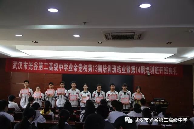 首先进行的是颁奖仪式。第13期培训班有不少学员表现优秀,他们在过去的一个月集中学习期间,态度积极,学习认真,得到大家的认可,舒位聪等10名同学获此殊荣。其中王尤发同学代表优秀学员发言,他认为作为业余党校培训班的学员虽然已经毕业了,但这并不是终点,而是一个新的起点。艰苦奋斗是党的优良传统,他呼吁大家在学习中发扬这种精神,挥洒汗水,努力拼搏,创造无悔的青春! 紧接着,在学员们期待的目光下,在场的领导和老师为业余党校第13期培训班学员颁发了结业证书,学员们郑重地接过证书,脸上洋溢着开心的笑容。 向党组织靠拢是每一个中学生的梦想,送走第13期学员,又迎来了第14期新的学员,他们是业余党校的新生力量。蔡妍玥同学代表新学员发言,她动情地引用了苏霍姆林斯基的话:热爱祖国,这是一种最纯洁、最敏锐、最高尚、最强烈、最温柔、最有情、最温存、最严酷的感情。她认为能进入业余党校学习,非常幸运且自豪,她愿意努力变成有用的人,报效国家! 张安稳书记在听取了学员们的心声后,对他们表示祝贺,同时提醒已经毕业的学员,万里长征才走完第一步,要成为一名合格的共产党员,还需要继续发扬求真务实的学习精神,付出长期的努力。此外,他还强调:到业余党校学习是为了明志。人生要有一个志向,志向明确了,才能抵制外界的诱惑和干扰,自主能力就强了,才能坚定地迈向既定的目标。最后,张书记向学员们提出五点要求,并提醒他们正确处理好文化学习和党校培训的关系,认真领会好培训内容,做到文化学习不放松,党校培训不放弃,确保党校学习时间,夺取学业成绩和政治学习的双丰收,同时在学校的各项工作中,要发挥自己的模范带头作用,特别在校风建设中要发挥好自身的榜样示范作用! 文:封明静 图文编辑:杨帆
